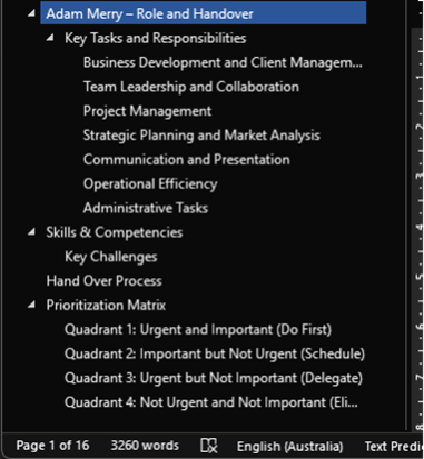 With just a few prompts such as "expand", "be detailed", and Copilot's native prompts, I now have all of the information necessary to make an informed decision - including Key Tasks and Responsibilities, Skills, Competencies, Prioritization Matrix, Handover Process as well as delegation suggestions based on what staff are doing within the business.
